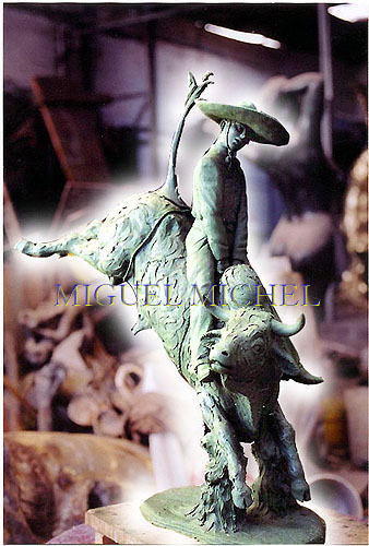 CHARRO MONTANDO TORO 50 x 60 cm.